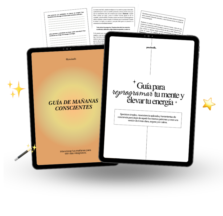 Ejercicios simples, neurociencia aplicada y herramientas de conciencia para dejar de repetir los mismos patrones y crear una versión de ti más clara, segura y en calma.