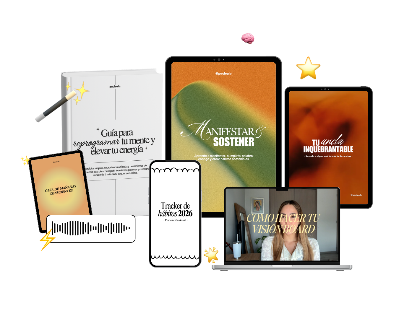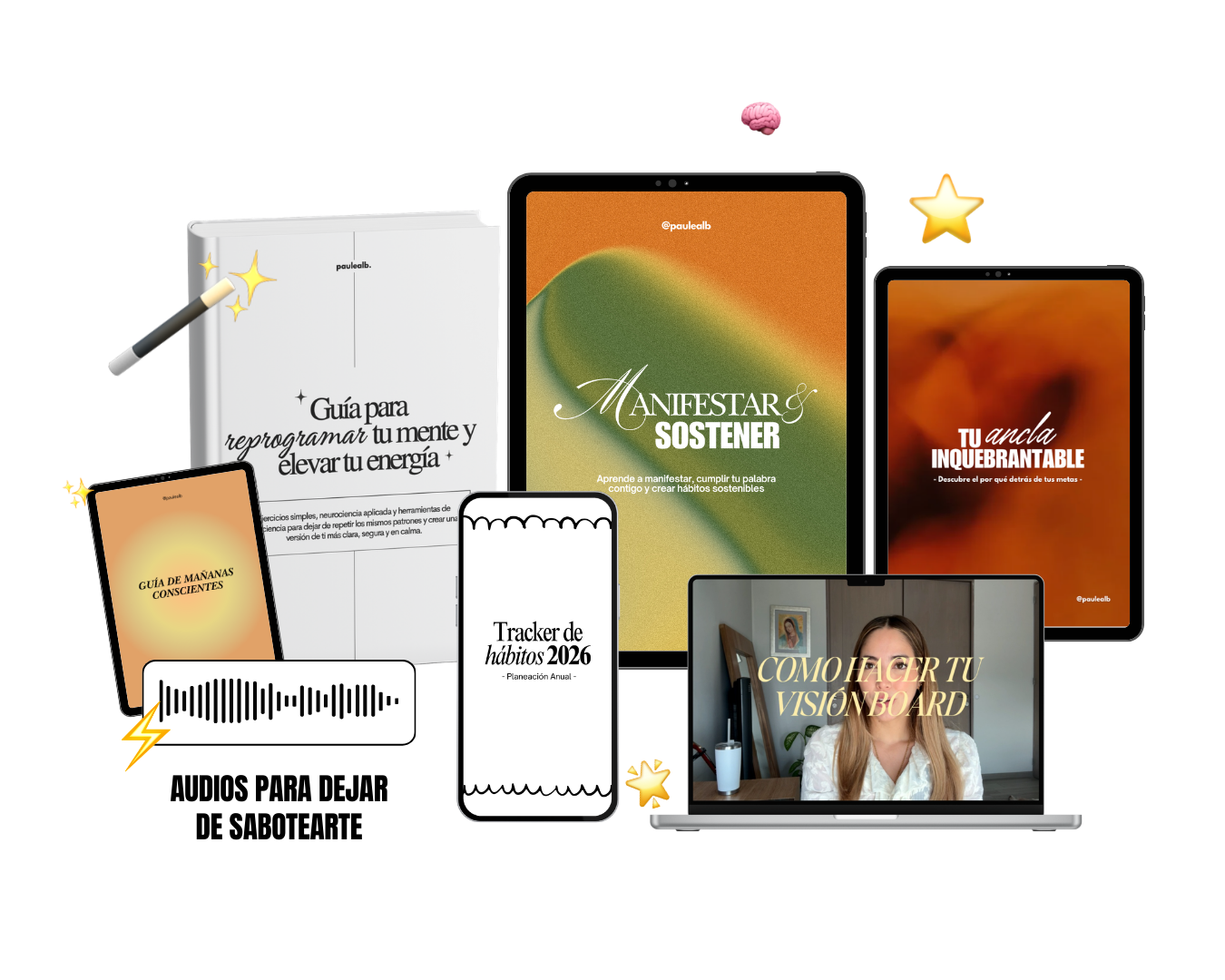 Si quieres asegurar que tu mente no te sabotee, reprogramar tu mente y realmente sostener el cambio, la guía es tu mejor aliada por solo $5 USD más.